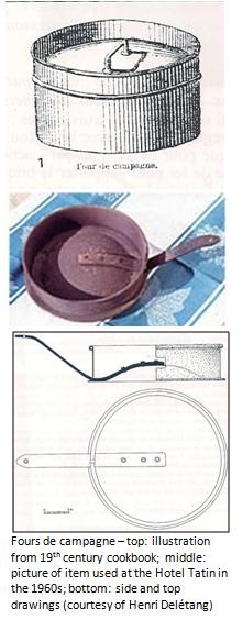 "Use a copper dish, without which one cannot make this delicious tarte. You will also need a coal-fired stove well stocked with embers. Rest your copper dish on top, and place embers over the lid of the dish since you will need equal heat from above and below to be successful.